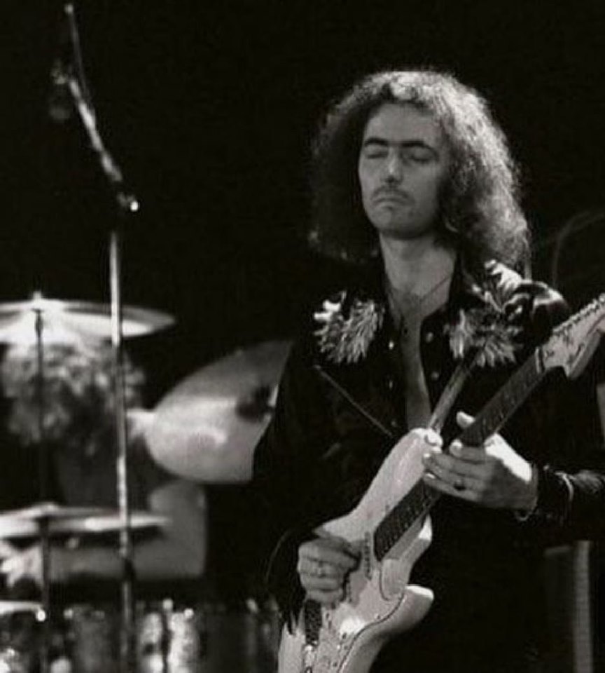 A late 1976 pic from Ritchie on stage with RAINBOW. He is playing his famous Olympic white ´74 Strat with the original, staggered Fender singlecoil pickups.