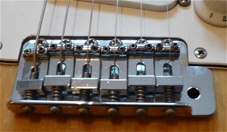 Ritchie really liked the one-piece diecast inertia bar with the diecast saddles, commonly found on all 70’s Strats. He never liked the earlier vintage saddles out of metal too much. He also preferred the original staggered Fender singlecoil pickups of the early 70’s with the bright and biting sound. In spring 1974 Fender introduced the more cost effective non-staggered (aka “flat pole”) pickups. A perfect substitute for these early 70´s Strat pickups are the Fender Custom Shop “’69s” pickups (aka “Abigail Ybarra pickups”) and theLeoSounds “VPS Fireball” pickups - you can see a pic of the LeoSounds pickups here. With the overwound pickups of today, it’s not possible to nail Ritchie’s pre 1977 tone!
