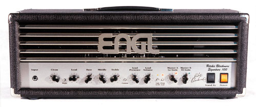 Some time later, ENGL released his own Blackmore signature amp (click H E R E to see a pic of the amp, and H E R E to have a look at the circuit drawing of the amp), based on the Savage, but tuned to Ritchie’s ideas and with 150 watts. Now Ritchie crossed the final landmark for his own signature sound. The common serial models had 100 Watts from 4 6550 power tubes, the 150 watts-model was discontinued after a short time and is really hard to find.