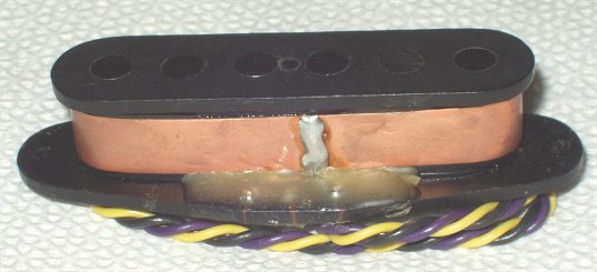 Some more words about humbucking with a dummy coil in general: the nearer the two phase-inverted coils, the more effective the humbucking effect, eg. in classical PAF pickup, or in singlecoil sized humbuckers. In Ritchie’s Strat, both coils are positioned far away from each other, so the humbucking effect was good, but not as good as in a common humbucker pickup. The amount of hum was very little, but still recognizable, so Ritchie’s chase for the perfect hum-free Stratocaster still had to continue ...
