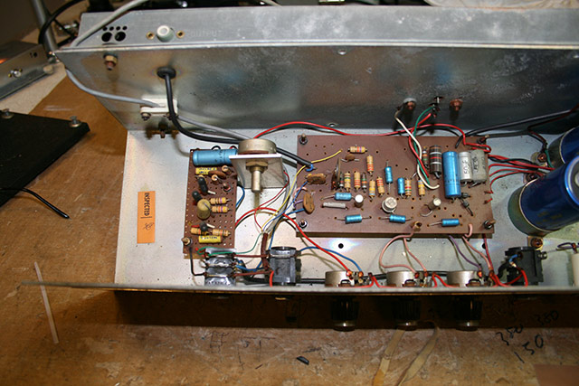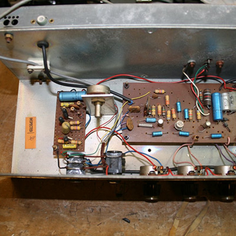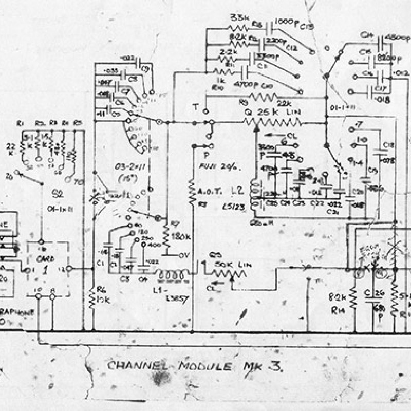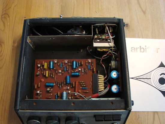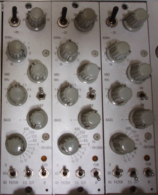 Since the early 1960s, Ritchie had used effects units, starting with Deep Purple, which I will, however, not enumerate here. But I would still like to mention, as this is going to be important, that Ritchie actually owned a Vox Wah-Wah, amongst other things, around 1966-67, when he was still a session musician. In 1968, he acquired a Marshall Reverb Fuzz #2021 (the Moody Blues had one as well) and also used it live, for instance, in “Mandrake Root”. The spring reverb was of a Hammond type, and the fuzz unit, equipped with germanium, was a copy of the Marshall Supa Fuzz which had actually been manufactured by the Macari brothers (=Colorsound) as OEM for Marshall or Park. On the photo from Jazz Bilzen (see above), the effect box is placed on the floor between the Marshall Stack and the VOX AC30, placed on a chair. This part was also used in the studio for the first DP records. On the first two DP LPs, in particular, the above Wah was manifestly employed. The last time the Wah appeared again after a long break was in Rainbow’s first LP in the song “Snake Charmer”, but no longer after that. In 1969, Ritchie acquired several boxes of Arbiters in one go, an “Add-A-Sound” (also used by Frank Zappa from approx. 1973), and a “Soundette”. The Soundette was a belt-driven disc echo (similar to the friction wheel-driven Binson Echorec) featuring a total of 5 heads, incl. recording & erase head and GE transistors. The echo time was, however, quite short due to the high rotational speed of the disc. For “Mandrake Root”, Blackmore replaced the Marshall #2021 by the Soundette approximately until mid-1970 after which the device disappeared into RB’s evidence room. But Ritchie was really taken with the Add-A-Sound, in particular. This was a Fuzz that could generate an octave higher and an octave lower at the push of a button. Many tracks on the “In Rock” were recorded with this, e.g., the octave effect of Living Wreck or Flight of a Rat. The Add-A-Sound is noticeable almost throughout the entire record. At the same time, a new FuzzFace of 1969 was frequently employed (BC108C), e.g., in the intro to “Speed King”. This one was usually employed far less as an aggressive Fuzz rather than to just crunch the signal. The low gain sound of the subsequent “FireBall” was also played in with this FuzzFace, along with a Hornby Skewes as booster. In “Machine Head”, the Fuzz was no longer employed but a/the treble booster was used in front of Ritchie’s AC30, instead. All this was dubbed in the storied Rolling Stone Mobile Studio, a converted truck equipped with the legendary Helios mixer plug-ins whose resourcefulness was in its formal simplicity. After a three-stage Si transistor input stage, the entire sound field was passive and, well, still had real inductors & transformers inside and that not too scarcely, and even the parametric middle EQs were passive, so that this was a solid piece of discrete analogue craftsmanship! The output was equally formed by a three-stage line amplifier module. It can be clearly assumed that the Helios contributed significantly to this sought-after sound creation under Martin Birch’s fingers. Many authoritative recordings were made in the Rolling Stones’ Helios Truck in the 1970s, see also Wikipedia.