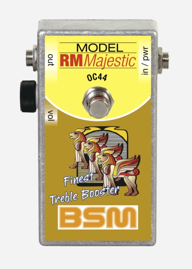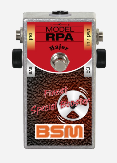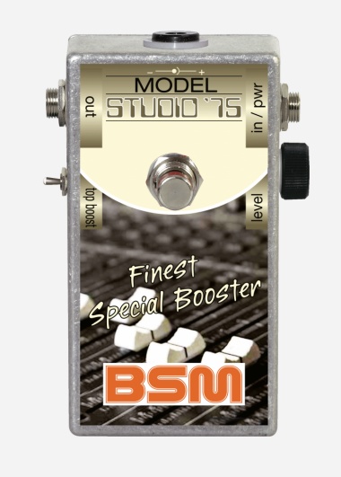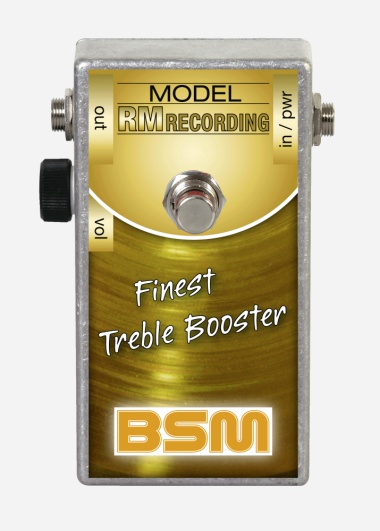 The RM Recording is based on the British Range Master unit produced between 1965 and 1969, as used by Eric Clapton in John Mayall's Bluesbreakers. It is the BSM top-of-the-line treble booster model for all studio and recording purposes.